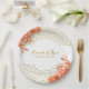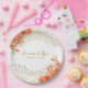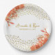 Prato De Papel Casamento Dourado com Lente Laranja Flores