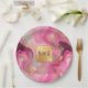 Prato De Papel Casamento Dourado e rosa marmoreado Monograma Faux