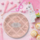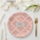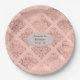 Pratos de papel de casamento vintage dourado rosa e rosa com damasco projetados para serem personalizados rápida e facilmente de acordo com os detalhes do seu evento.