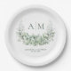 Prato De Papel Casamento Elegante Monograma Eucalyptus Greenery