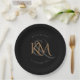 Prato De Papel Casamento Elegante Preto Preto com Script Dourado