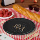 Placa de Papel de Casamento Preto Elegante Preto, com Script Dourado Moderno Monograma. Imprima seus hóspedes com este design de tema de casamento elegante e moderno de monograma duplo. Simples, mas exude glamour e luxo, suas características de eterno durarão para sempre!