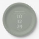 Chapa de papel elegante com sua data especial e nomes definidos na tipografia moderna em um fundo verde sábio. Projetado por Thisnotme©
