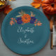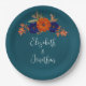 Prato De Papel Casamento Floral Azul de Marinho Laranja de Outono