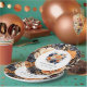 Defina o tom do seu casamento elegante com esses pratos de papel impressionantes com vibrantes acentos florais em azul marinho, laranja queimada e champanhe.