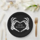 O esqueleto negro do coração de pratos de papel descartáveis com um tema "até a morte nos separarem". Suprimentos ideais para festa de casamento, ensaio ou recepção casual. Personalize a dentro do coração com as iniciais do golpe e a data.