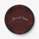 Prato De Papel Casamento Gótico Elegante Floral Vermelho Profundo