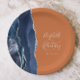 Estas elegantes placas de casamento modernas apresentam uma design azul de aquarela, aparada com falso brilho prateado. Personalize facilmente o texto da cinza prateada em um fundo laranja queimado, com os nomes da noiva e do noivo em caligrafia manual sobre um grande e grande painel.