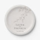 Esses clássicos pratos de papel branco personalizados para casamento com tipografia moderna e design botânico parecem frescos e elegantes. Sinta-se à vontade para editá-los com seus nomes e data de casamento. Convites, confirmação de presença e cartões de inclusão correspondentes, bem como papelaria do dia, também estão disponíveis.