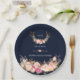 Prato De Papel Casamento Marinho de Anéis Florais com Blush de Co