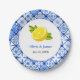Prato De Papel Casamento mediterrânico de Limão Azulejo Azul