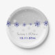 Cinza azul, prata, placa de papel para casamentos com flocos de neve brancos, com estrelas e flocos de neve azuis elegantes em cinzas. Texto em azul e cinza. Um design de na moda perfeito para o seu casamento de inverno, dezembro ou Natal. Moderno e contemporâneo, mas adequado para uma festa tradicional de casamento, chá de panela, recepção, noivado ou aniversário.
