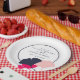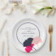 Adicione um toque de elegância sem gastar muito com pratos de papel personalizados para a recepção do seu casamento. Faça uma declaração com cores ousadas e um gráfico limpo e simples. Apresenta ilustrações de folhas de ginkgo em azul naval, rosa claro e magenta cor-de-coral brilhante.