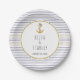 Prato De Papel Casamento náutico com listras azuis Douradas marin