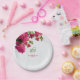 Um belo design com Bougainvillea floral rústica e folhas em uma parede branca estilo Mediterrâneo da Ilha Grega. Um design elegante de prato de papel de flor de Bougainvillea para casamento, perfeito para casamentos estilo Ilha Grega e Mediterrâneo. O verso do cartão apresenta um monograma minimalista. Convites de casamento e outros itens de papelaria correspondentes também estão disponíveis.