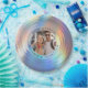 Criação moderna com cores holográficas e formas circulares que podem ser personalizadas com seu texto e foto. Observe que tintas regulares são usadas para impressão deste produto, e o brilho metálico é simulado no design.
