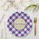 Esta placa de papel gingham de biscoito rústico faz parte da coleção de toalhas de mesa VGInvites checker. Este "I Do Do CHURRASCO party decor" combina muito bem com a minha suíte de convites. Estas placas de papel apresentam um fundo de vintage chique com um design de padrão de checador roxo e as palavras "Cair no Amor". Personalize seus pratos com seus nomes e casamento ou data de chá. Perfeito para um tema de casamento rústico. Para ver mais ideias visite o VG Invites no Zazzle