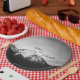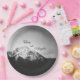 Casamento preto e branco debaixo das montanhas. Fotografia paisagística de uma montanha coberta de neve com escuridão abaixo e céu branco nublado acima. Os nomes do casal estão em caracteres pretos acima da montanha no céu e todos os detalhes estão em caracteres brancos abaixo da montanha. Produtos de casamento totalmente personalizáveis e personalizáveis.