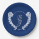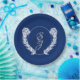 Prato De Papel Casamento Real Azul Clássico em Monograma
