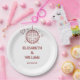 Estas placas de papel de noivado de boia de disco vermelho podem ser personalizadas com suas informações na tipografia moderna. Projetado por Thisnotme©