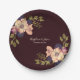 Prato De Papel Casamento Romântico Floral Burgundy