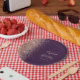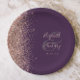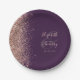 Prato De Papel Casamento Roxo de Rosa Dourado Moderno