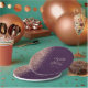 Estas elegantes placas de casamento modernas apresentam uma borda brilhante rosa dourada. Personalize facilmente o texto cor-de-rosa rosa num fundo roxo, com os nomes da noiva e do noivo na caligrafia caprichosa sobre uma grande variedade de cinzas de carvão.