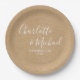 Prato De Papel Casamento Rustic Kraft, Script de Assinatura Elega
