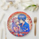 Pratos de papel de casamento com casal de menino e menina anime adorável, noiva e noivo com flores vermelhas e azuis e corações