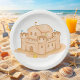 Um castelo de areia grande e legal na praia. Este design parece realmente eficaz nestas placas de papel
