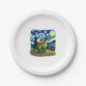 Prato De Papel Cat Riding Dinosaur T-Rex Starry Night Cat Lover (