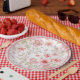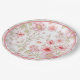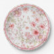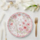 Pratos de papel bonitos com uma imagem elegante de aquarela de caules de flores cor-de-rosa com botões e flores.