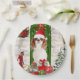 Cavalier King Dog sentado do lado de fora de casa decorada com coroa de Natal, árvore de Natal é uma ideia perfeita de presente de Natal para amantes de cachorros.