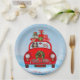 Prato De Papel Cavalier King Dog Em Carro Com Papai Noel