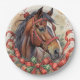 Celebrar as festas em estilo com este charmoso travesseiro de festas de Natal, com elegantes cavalos de abrigo adornados com arcos de xadrez e fitas em uma bela design de aquarela.