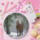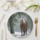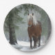 Prato De Papel Cavalo marrom em uma floresta de inverno com neve