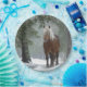 Placas de papel com uma fotografia de um cavalo marrom com um mane branco esfregado longo. Em pé em uma floresta com flocos de neve caindo por toda parte.