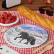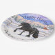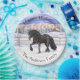 Prato De Papel Cavalo Negro Frísia Trotando na neve