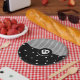 Prato De Papel Caveira Caprichosa Preto & Branco Bolinhas & Listr