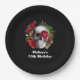 Prato De Papel Caveira do gótico com Flores Vermelhas e Folhas Do