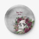Prato De Papel Caveira e Rosas Borgonha Bege Cinza Personalizado