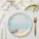 Prato De Papel Cena Costeira de Praia com Barco de Pesca