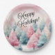 Prato De Papel Cena de inverno das Árvores de Quartel e Rosa