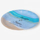 Pratos de papel com uma fotografia de uma cena de oceano azul claro com ondas suaves ao longo de uma costa e areia marrom macia. Um céu azul com nuvens fofas ao longe. Paisagem marinha tropical serena e idílica. personalize com os detalhes do seu casamento.