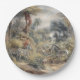 Prato De Papel Cenário botânico de zebras e leões em oásis