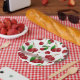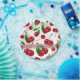 Placa de papel padrão de fruta de cereja com solteiro e cerejas pareadas com caules e folhas verdes ainda anexadas - espaço personalizável para o nome da família, da empresa ou da organização ... perfeito para uma reunião de verão - por katz_d_zynes :: para obter assistência personalizada, clique no link "Perguntar a este Designer" abaixo