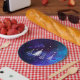 Adicione um toque de elegância à sua Festa de Natal com estas Pratas de Papel da Festa de Natal desenhadas com um fundo celeste azul, Árvores de Natal brancas e Estrelas Coloridas Douradas. Procure os Acessórios da Festa de Natal correspondentes.