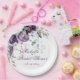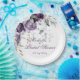 Belas peônias roxas, lavandas e brancas e folhagens variadas em cascata sobre letras e fontes elegantes criam este lindo prato de papel para chá de panela. Belo design de flores em aquarela. Tão elegante para um chá de panela. Adicione seu nome e data do evento. Eu gostei de criar este design para você. A Zazzle garante 100% de serviço ao cliente e satisfação.