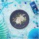 Prato De Papel Chá das flores do marinho & do rosa branco 7"