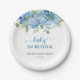 Pratos de Papel para Chá de Bebê Watercolor Blue Hydrangea Baby em Flor.